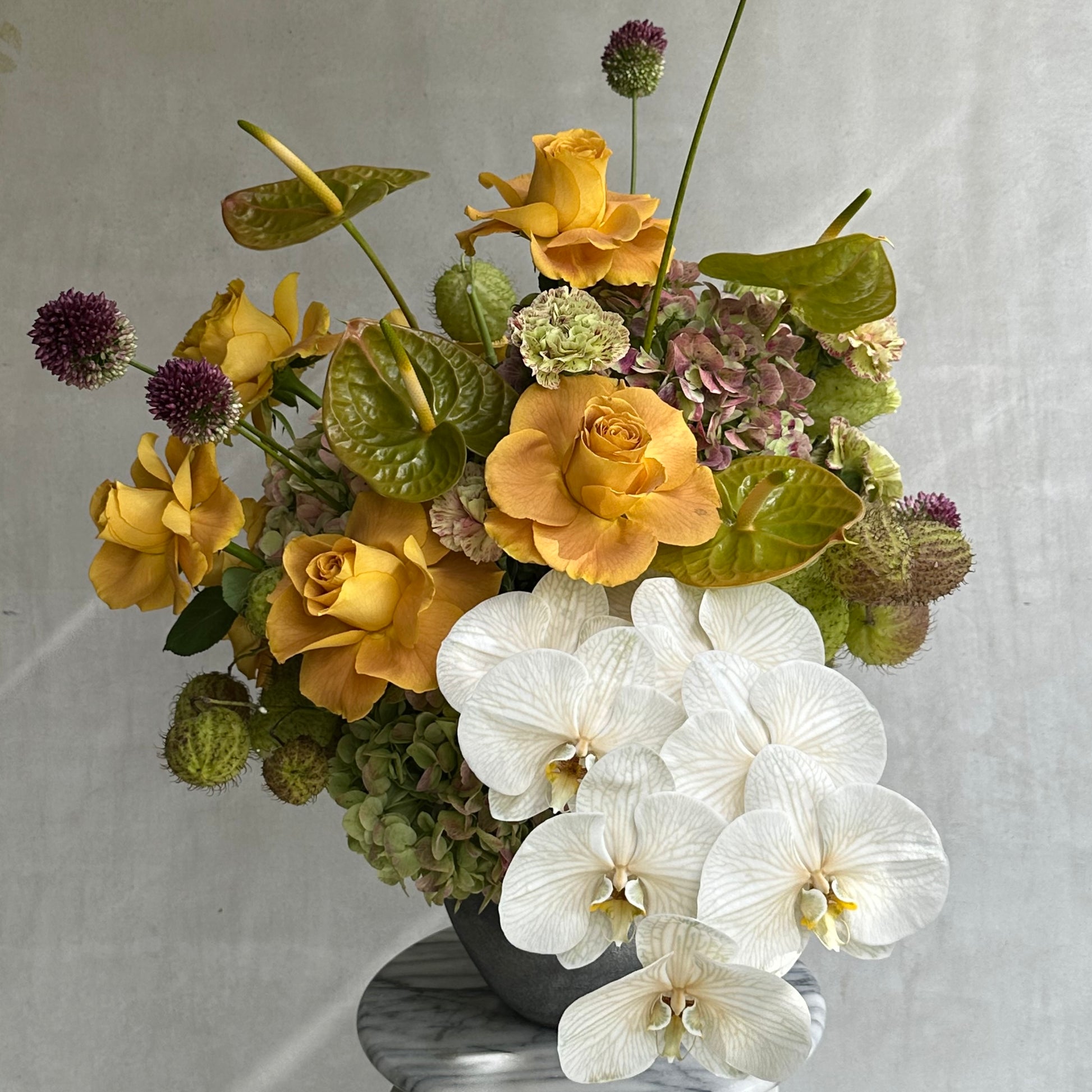 The most unique and custom option of arrangements we offer. Every arrangement as a statement piece will be discussed with customer to match exactly what they want. Please give us as much information as you can in the order form and we will be in touch to discuss every detail.